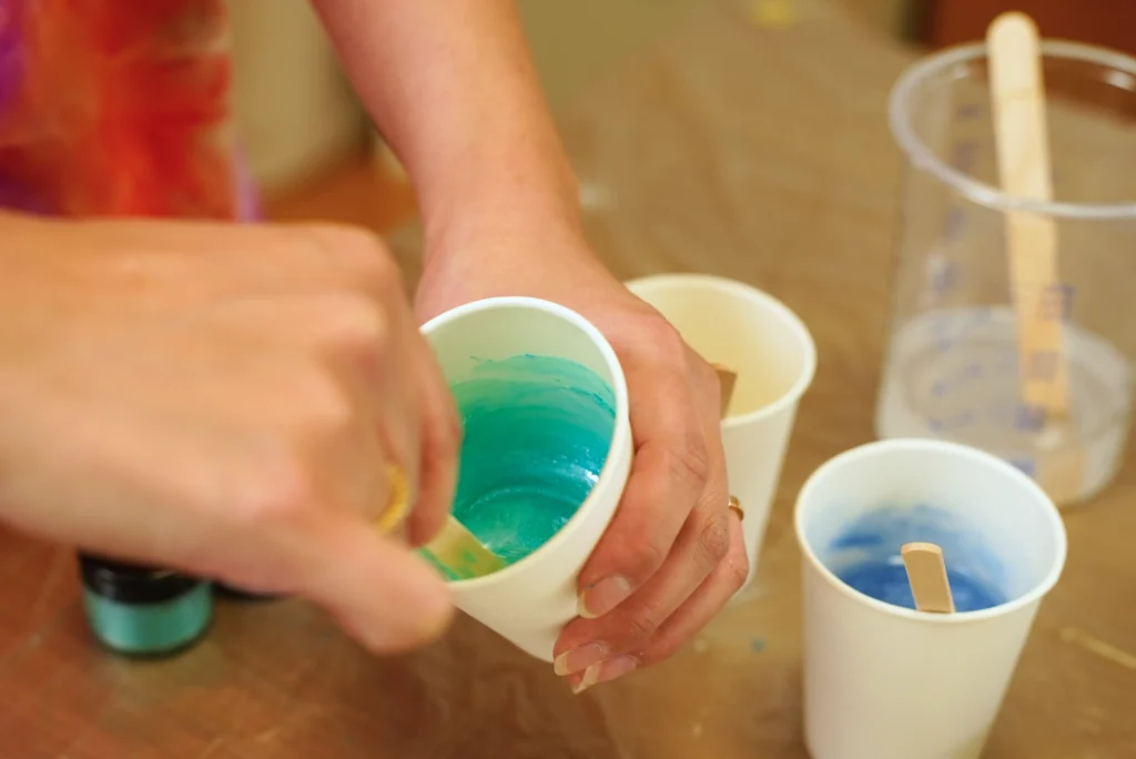 パネルサイズとレジンの層数(1〜3層)が選べる、自分スタイルのアートレッスンです。