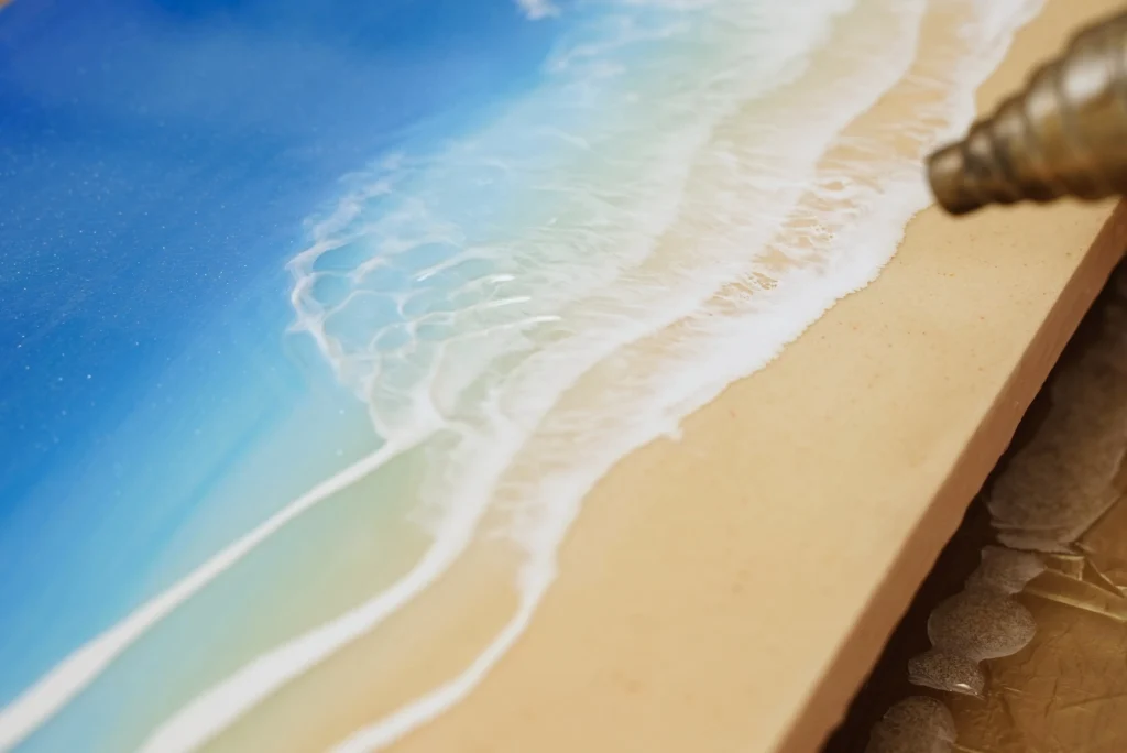 最大で3層までレジンを重ねて、海の色の深みや波の奥行きを表現する本格的な作品を制作できます。重ねる層の数は自由に選択できるため、ご自身のお好みの作風に合わせたカスタマイズレッスンが可能です。