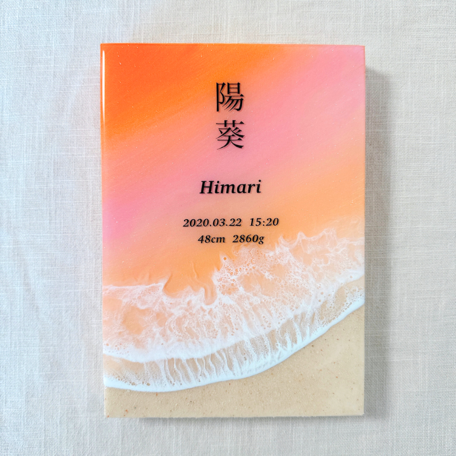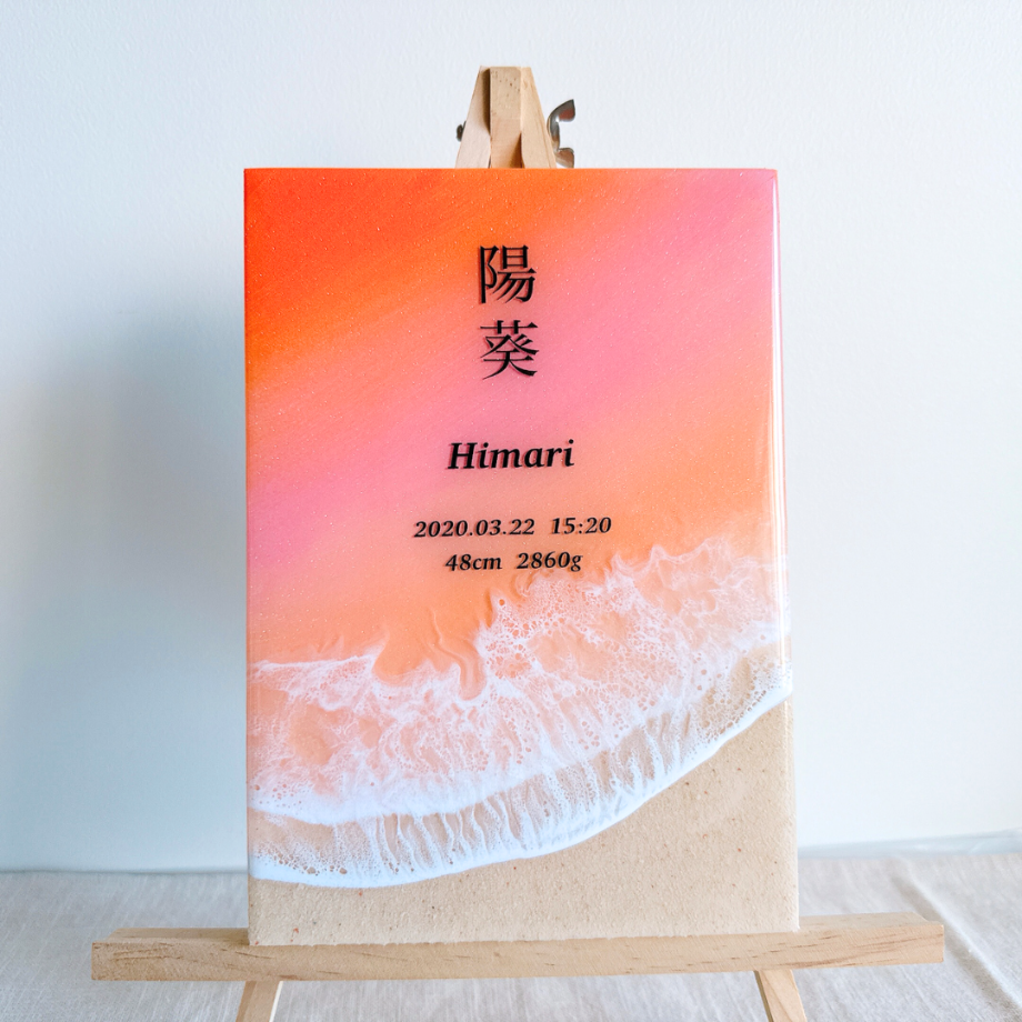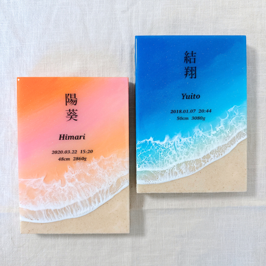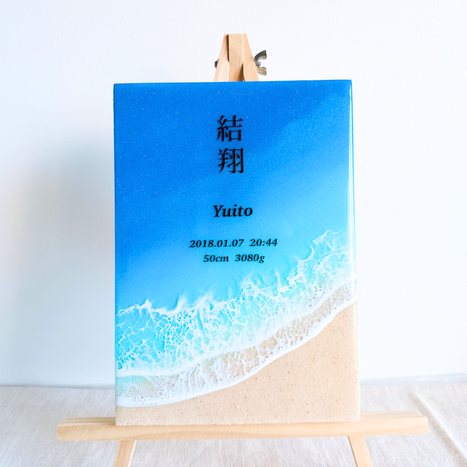 海レジンアートに、お名前や記念日を入れられます