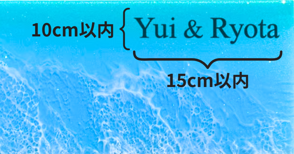 | 文字位置:海の中 右上 文字内容:Yui & Ryota フォント:① 文字色:黒 | 文字位置:砂浜の中 右下 文字内容:ロゴマーク(要PNGまたはJPEGデータ送付) フォント:なし 文字色:黒 |